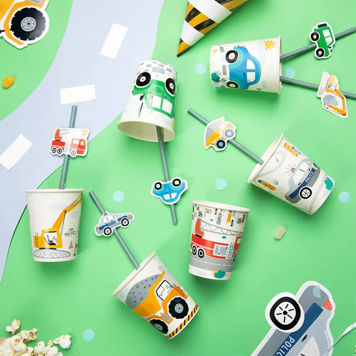 Χάρτινα Καλαμάκια με Σχέδιο Vehicles Συσκευασία 6 Τεμαχίων